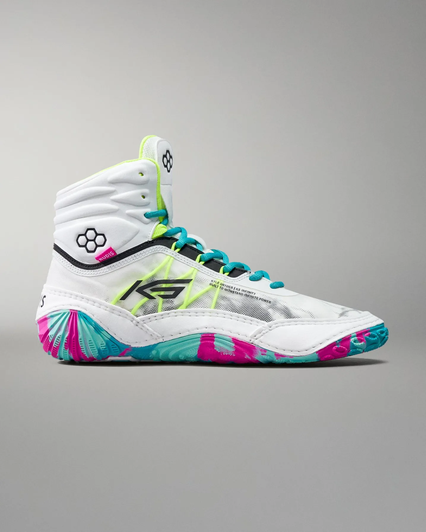 Similar to Kyle’s unwavering attitude, the KS Infinity Wrestling Shoe provides constant support for the strongest wrestlers. The multi-layered upper provides durability and a second-protective-skin feel. Designed to be the perfect wrestling shoe for Heavyweight wrestlers, the KS Infinity is an anchor that will keep you grounded.