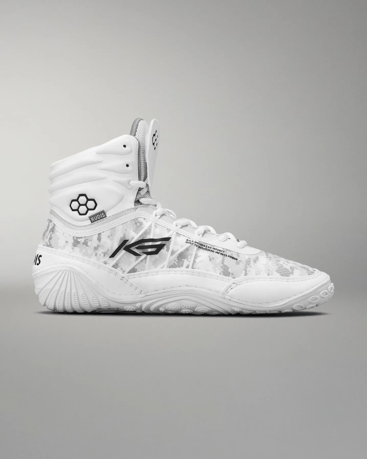 The Kyle Snyder KS Infinity Edge Adult Wrestling Shoes give wrestlers an extra edge on the mat. Designed for durability and flexibility, this wrestling shoe provides constant support for the strongest wrestlers. The multi-layered upper provides durability and a second-protective skin feel. The omnidirectional outsole also gives extra traction that grips the mat. Crafted to be the perfect wrestling shoe for heavyweight wrestlers and wrestlers that utilize power in their technique, this shoe is an anchor that will keep you grounded.